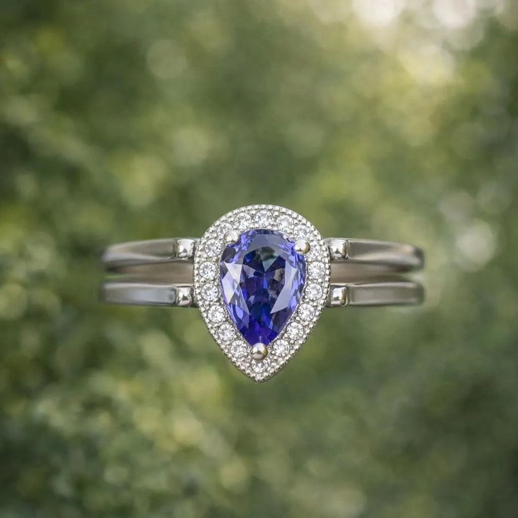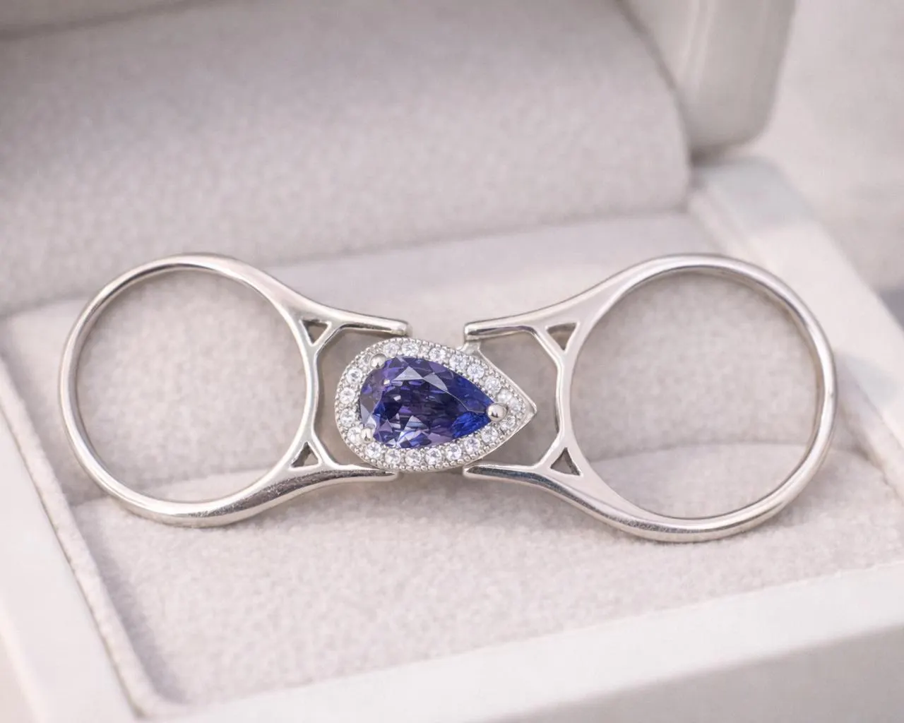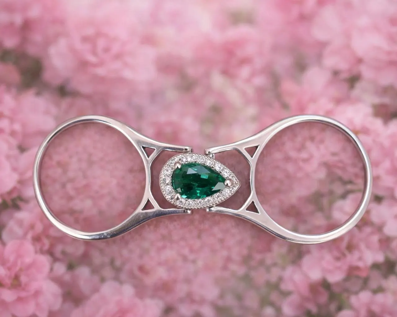 Double Stone 925 Sterling Silver Ring- Natural Emerald And Tanzanite Pear Cut Ring- Dainty Ring Gift For Her-Morden Statement Jewellery