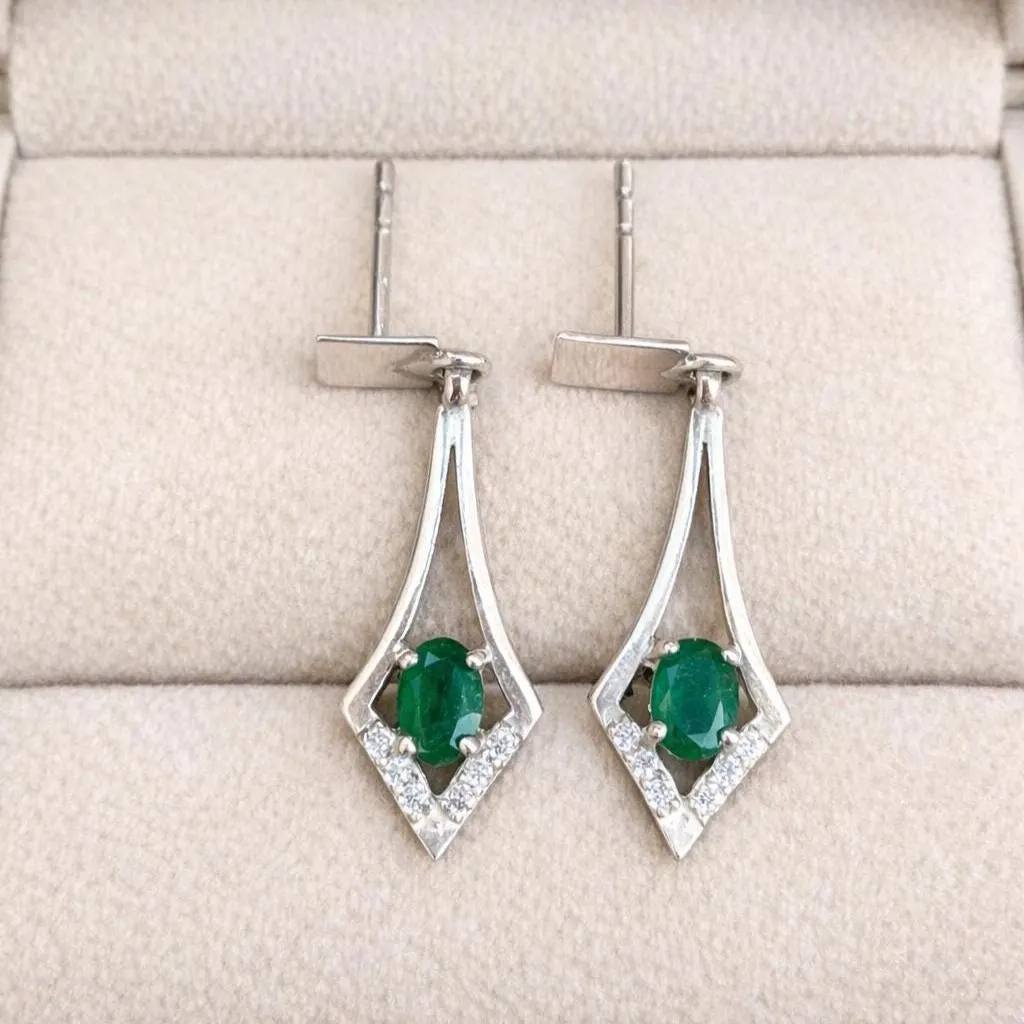 Emerald Drop Earrings – Sterling Silver, Green Gemstone Jewelry
