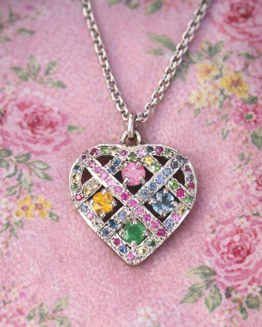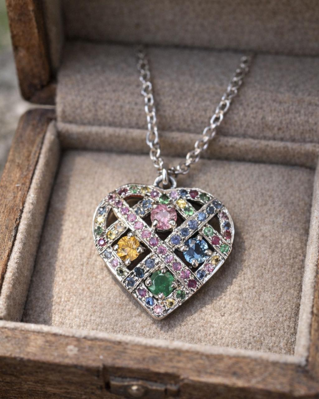 Emerald & Sapphire Heart Necklace – Sterling Silver Gemstone Pendant