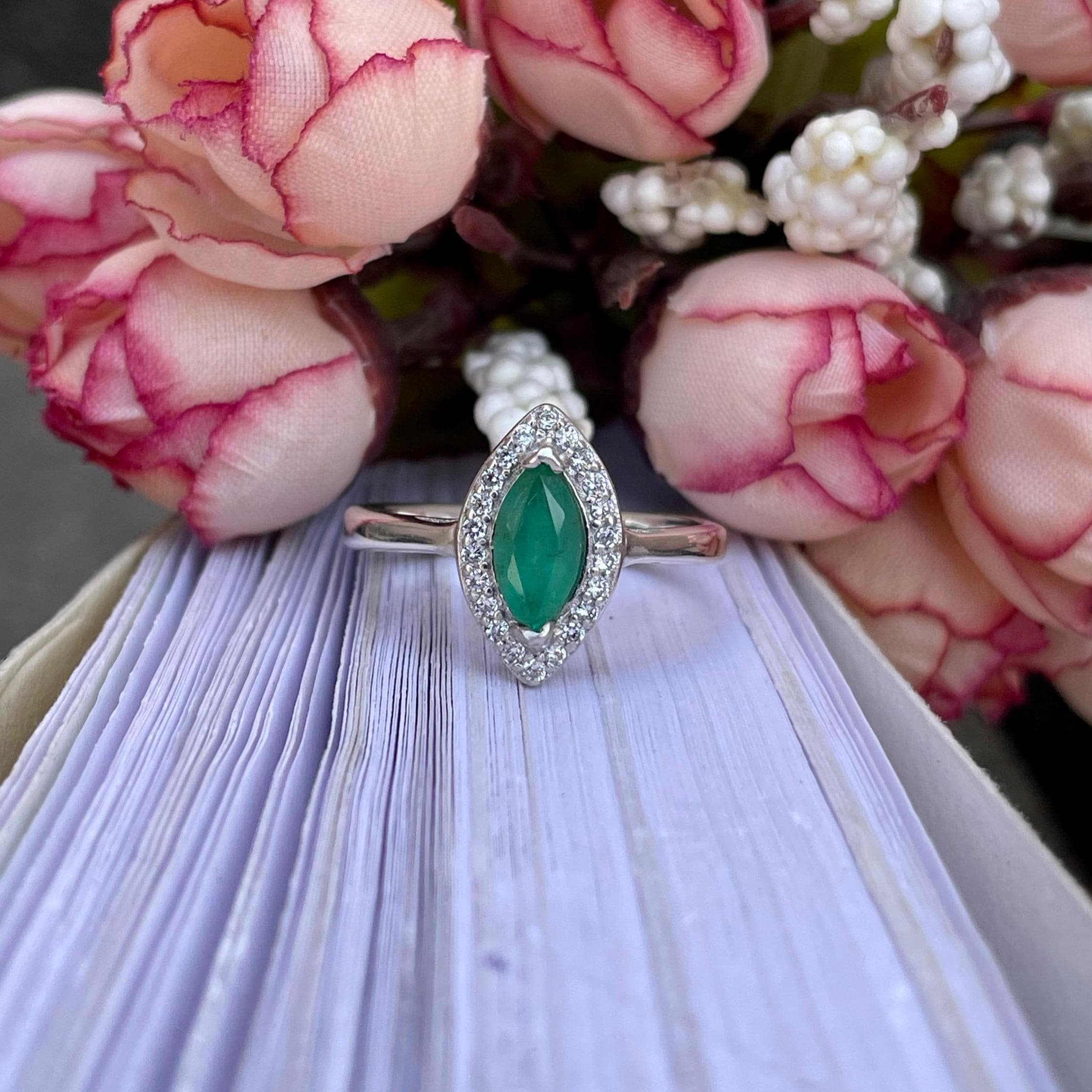 Marquise Zambian Emerald Ring – Vintage 925 Sterling Silver