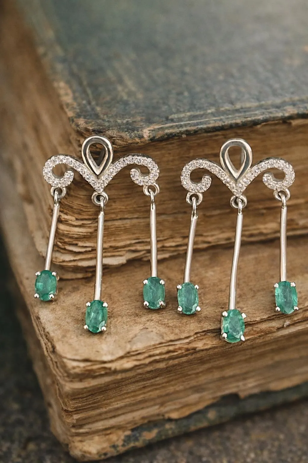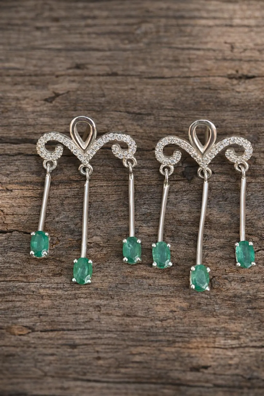 Natural Emerald Long Drop Earrings- 925 Sterling Silver Earring- Geniune Green Emerald Long Silver Earrings- Dainty Gift For Her