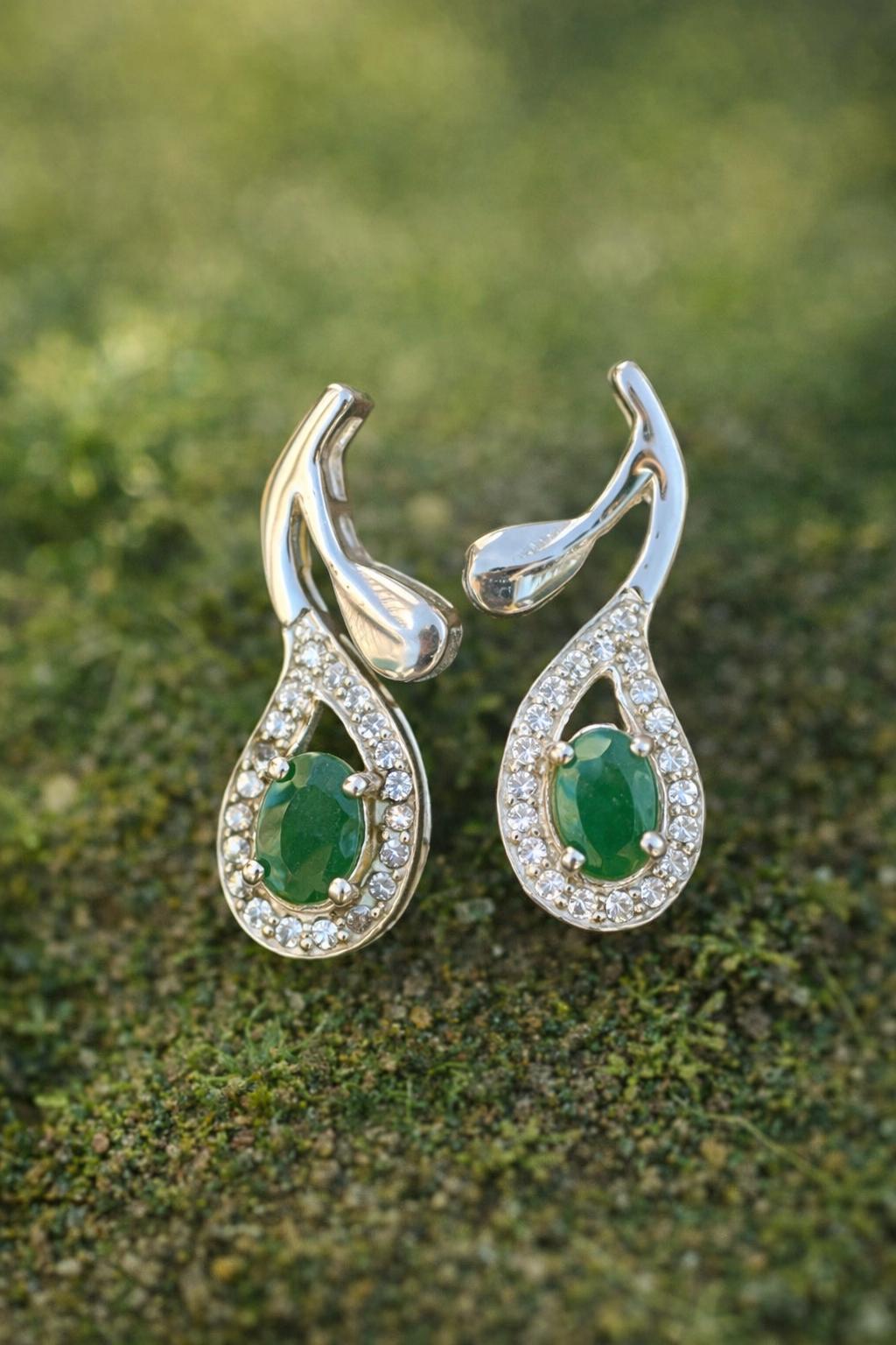 Natural Emerald Necklace Set- Vivid Green Emerald Silver Necklace With Matching Earrings- Elegant Jewellery Set- Nature Inspired Jewellery