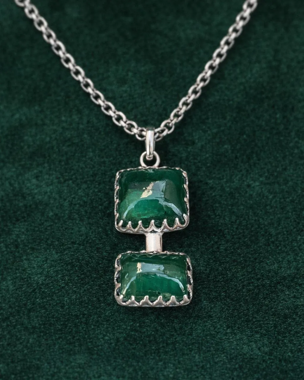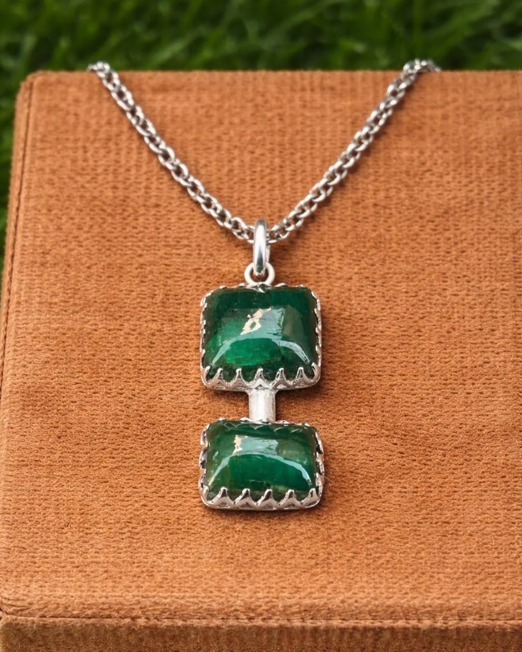 Natural Emerald Sterling Silver Pendant – Untreated Cushion Cut