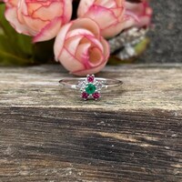 Natural Emerald with Cubic Zerconia Floral Ring 925 Sterling Silver- Round Cut Gemstone- Minimalist Ring- Everyday Jewellery Gift For Her
