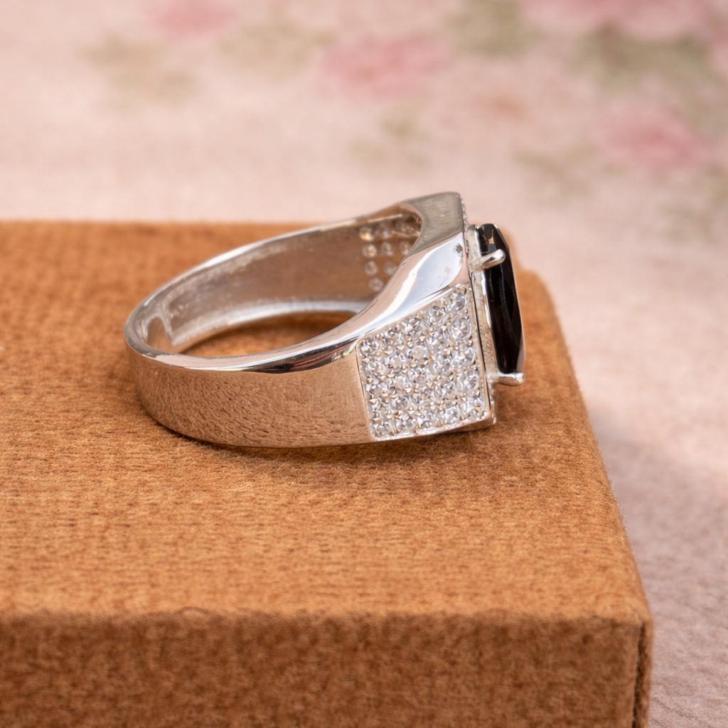 Natural Tourmaline CZ Halo Ring- 925 Sterling Silver- Men’s Statement Ring- Oval Cut Silver Ring- Vintage Style Ring