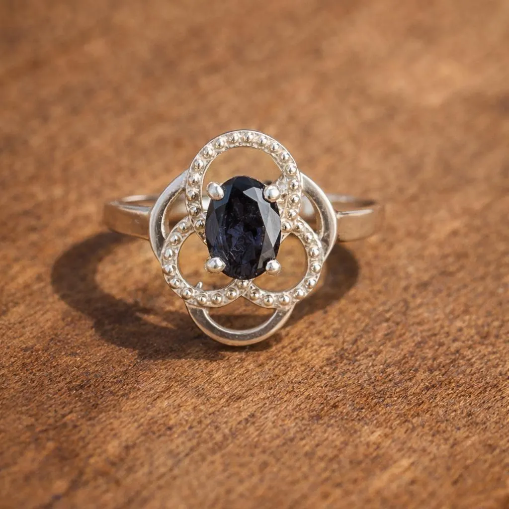 Natural Tourmaline Ring- 92.5 Sterling Silver Ring- Vintage Style Ring- Dark Blue Oval cut Gemstone Ring- Statement Ring- Gift For Her