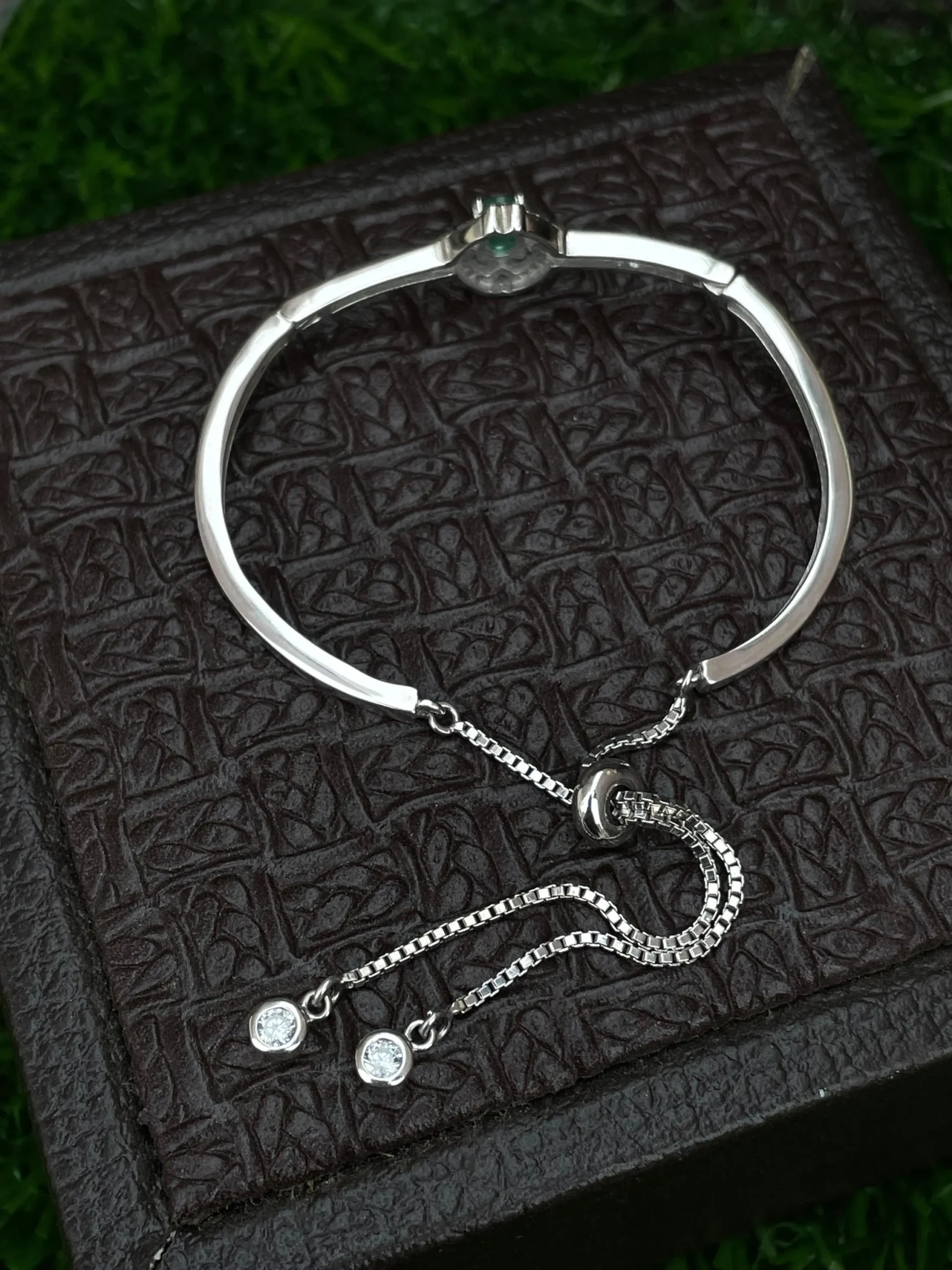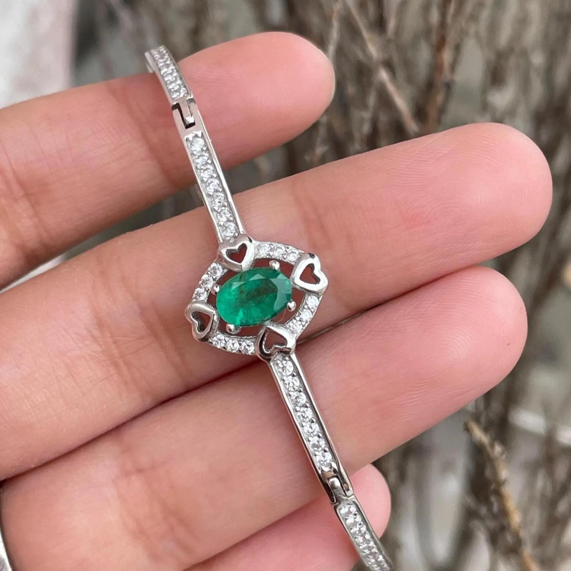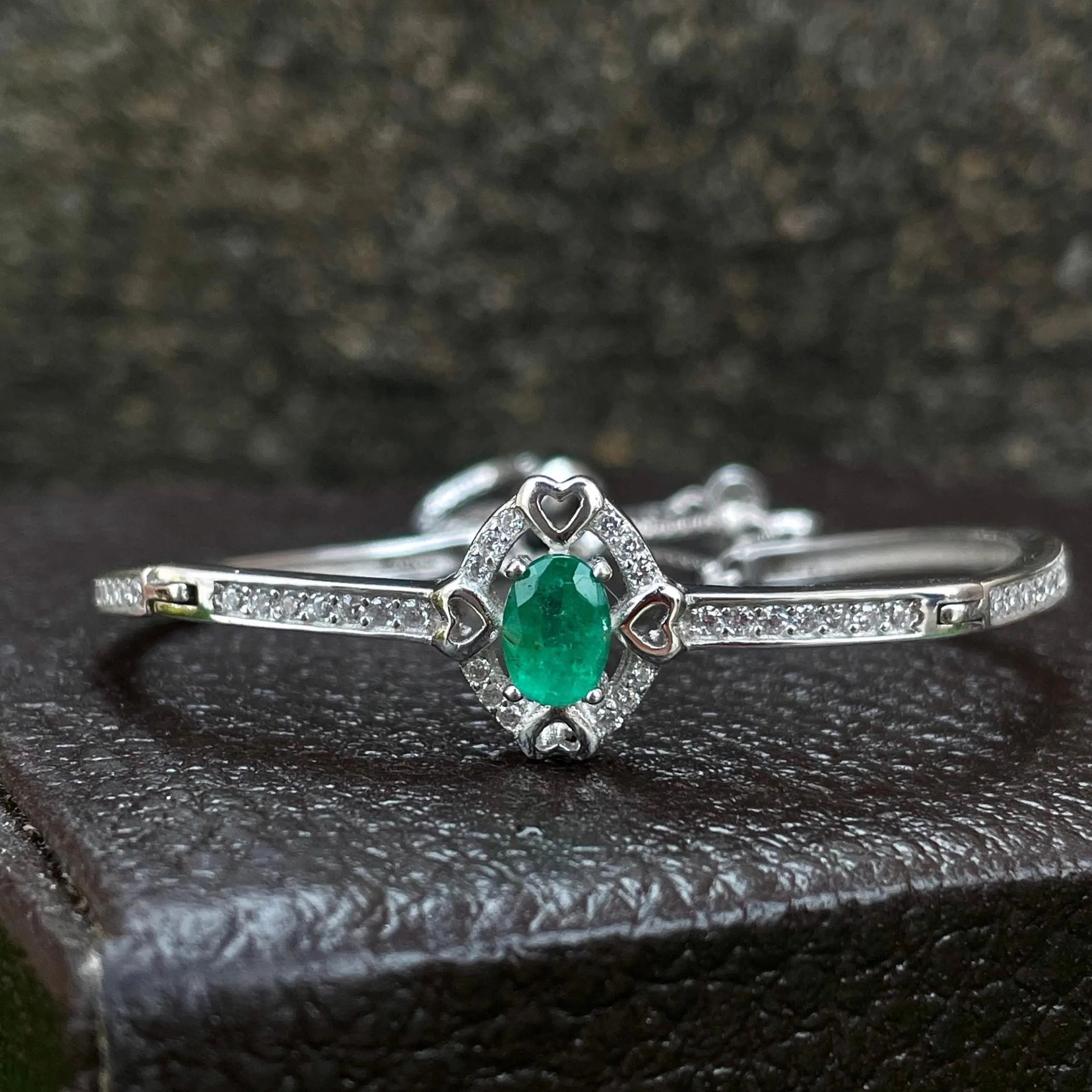 Natural Zambian Emerald Bracelet With CZ- 925 sterling Silver Bracelet- Green Gemstone Bracelet-Dainty Heart Desgin Jewellery- Gift For Her