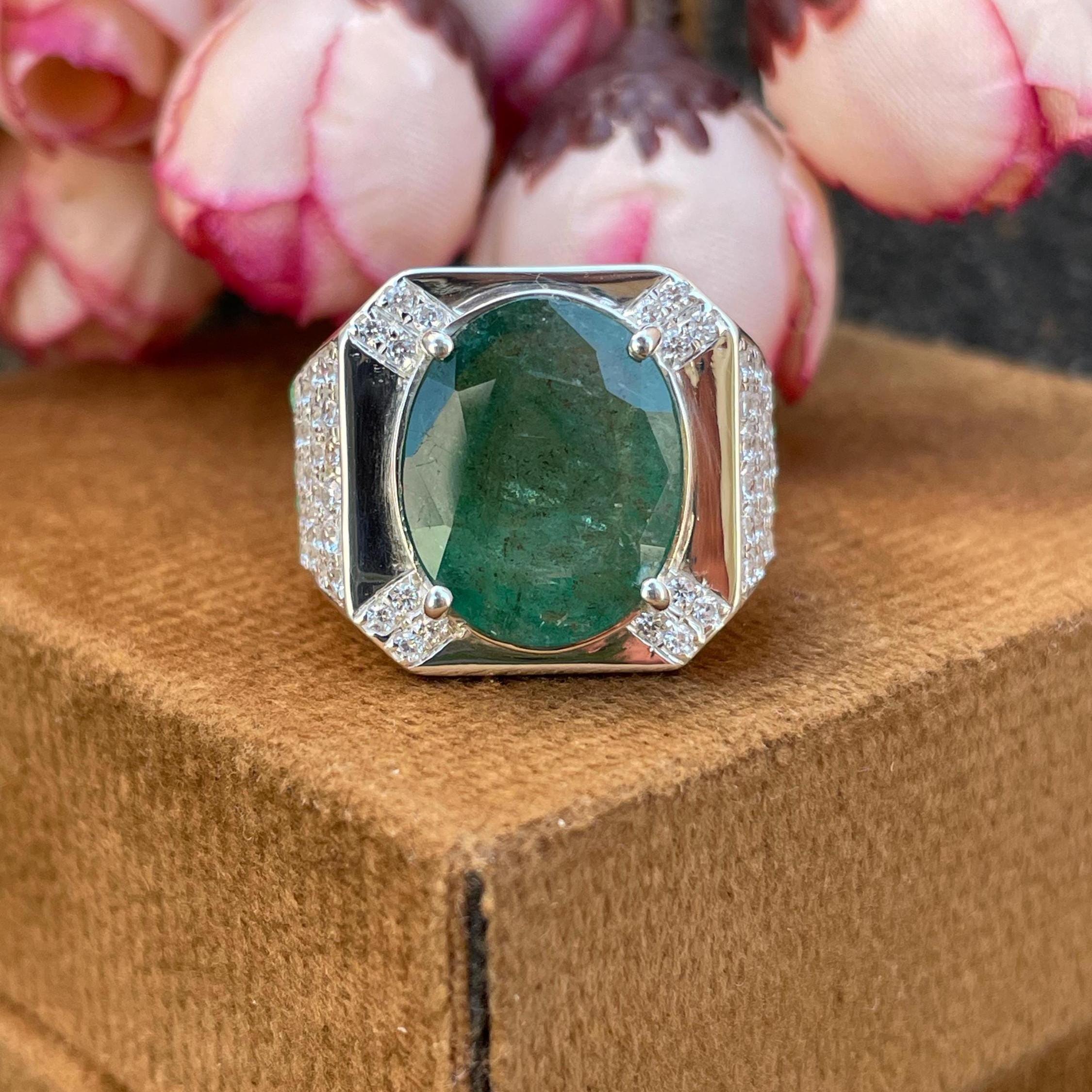 Natural Zambian Emerald Men’s Ring- 925 Sterling Silver Ring- Oval Green Gemstone Ring- May Birtstone Jewellery- Statement Ring- Gift Him