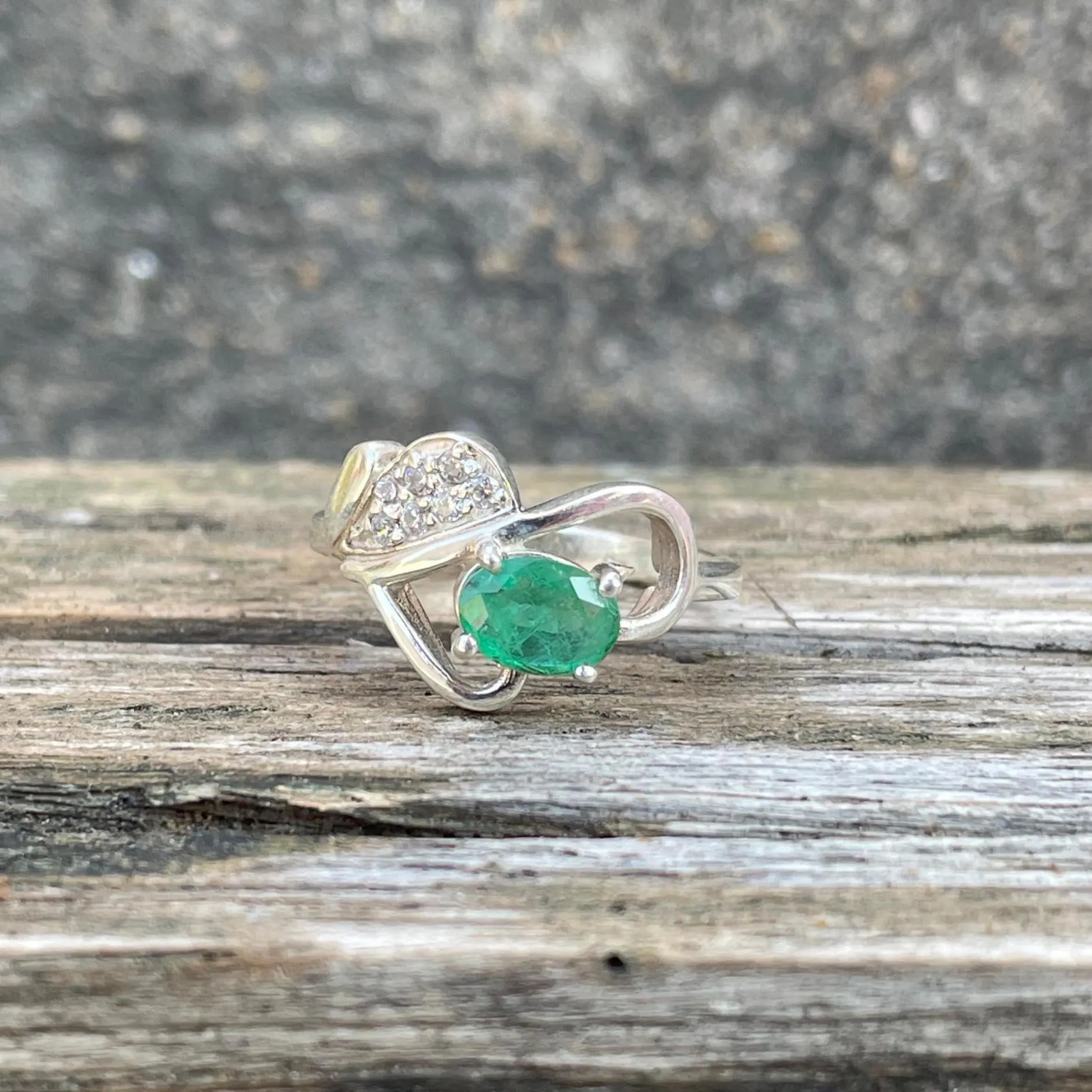 Natural Zambian Emerald Ring 92.5 Silver Sterling- Heart Design Emerald Ring- Morden Statement Ring- May Birthstone jewellery- Gift For Her