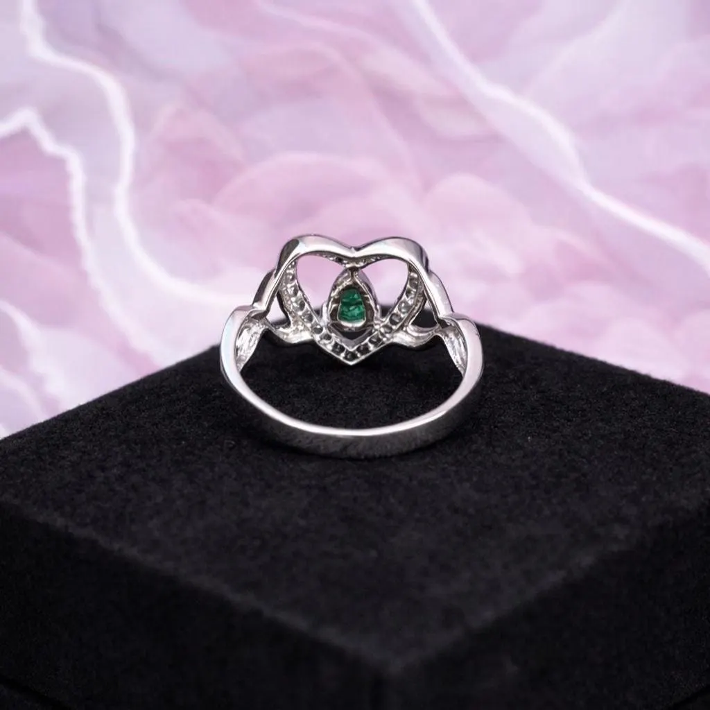 Natural Zambian Emerald Ring 92.5 Silver Sterling Ring – Bluish Green Gemstone Ring-Minimalist Elegant Heart Ring-Vintage Style Emerald Ring