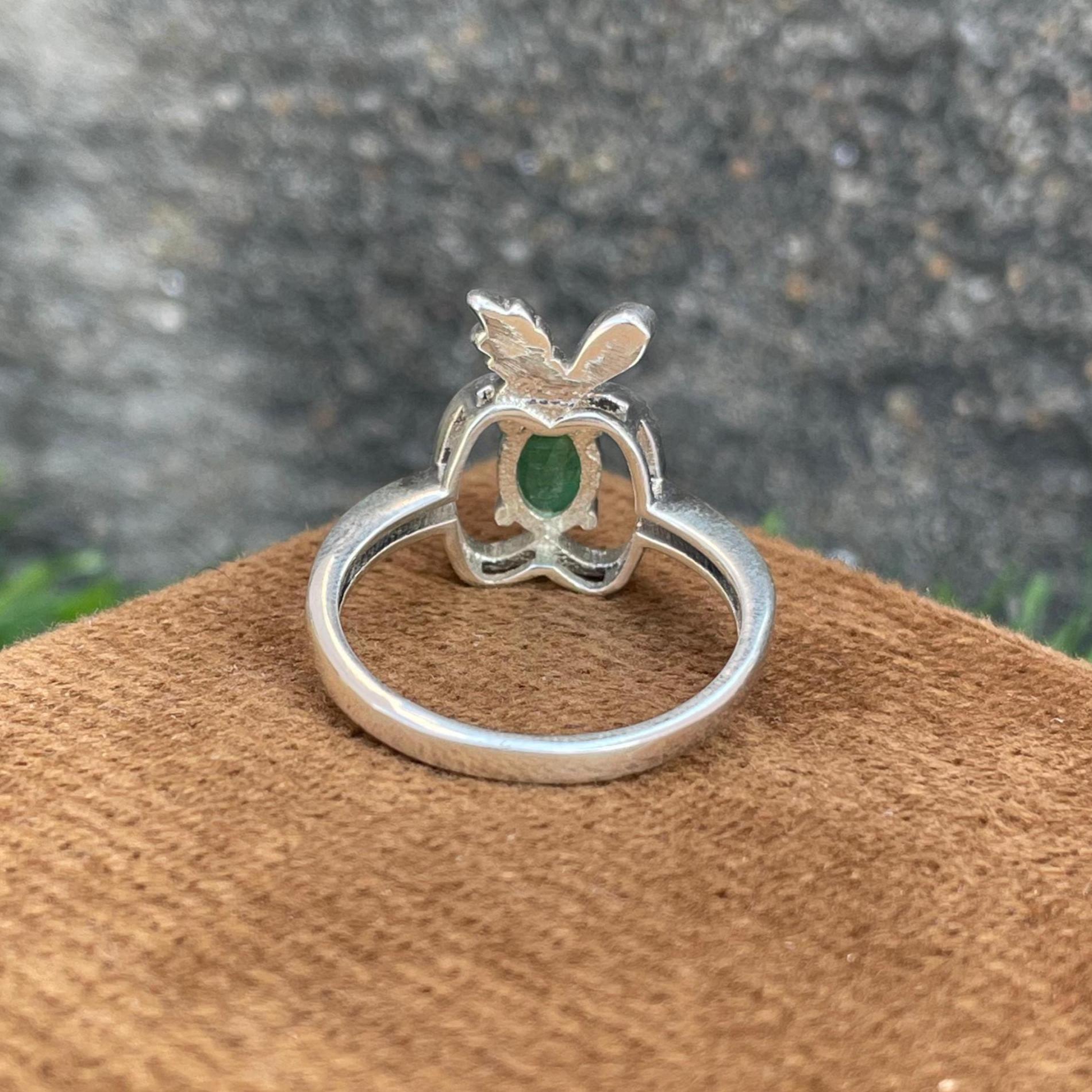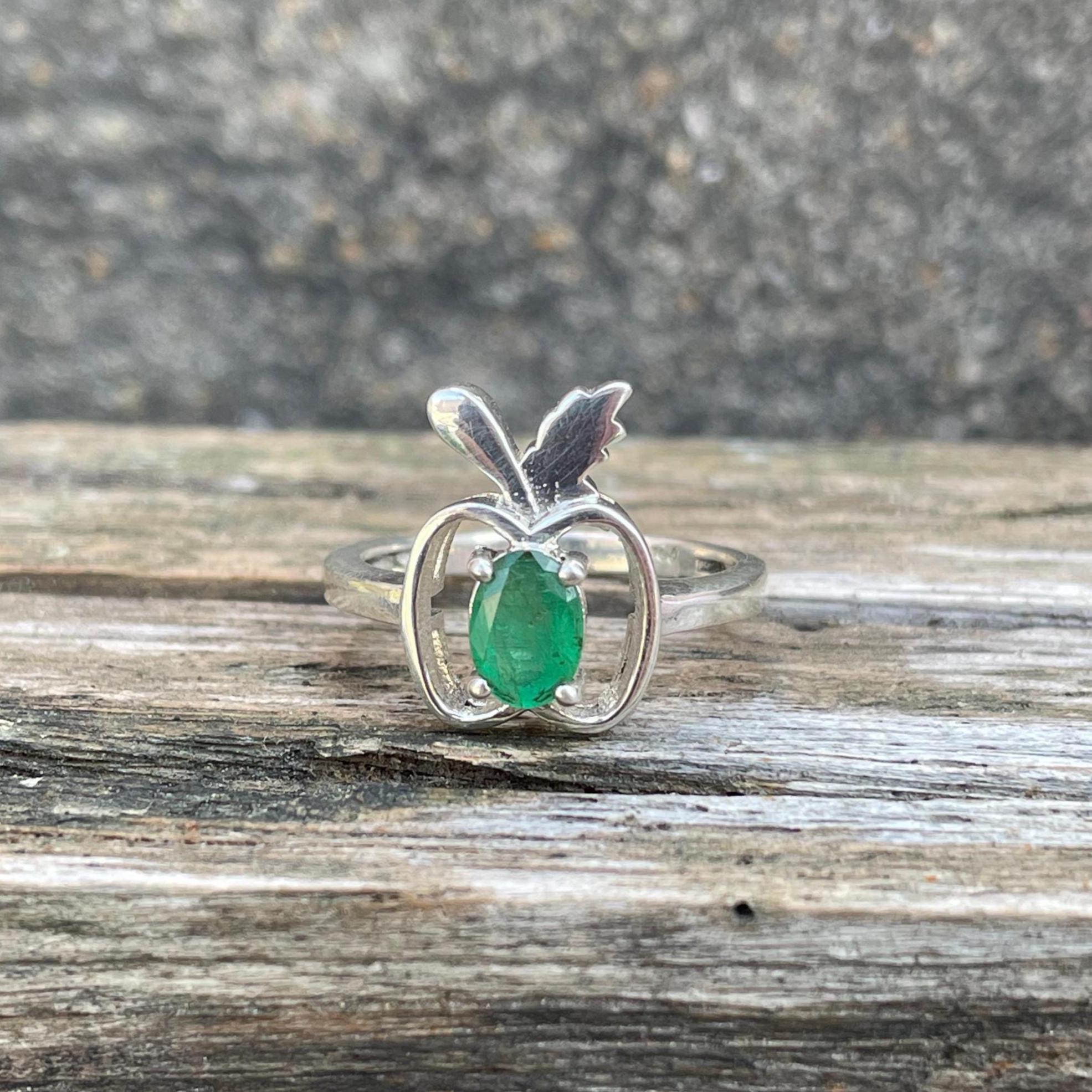Natural Zambian Emerald Ring-925 Sterling Silver Ring- Apple Shaped Green Gemstone Ring- Botanical Leaf Jewellery For Women- Gift For Her