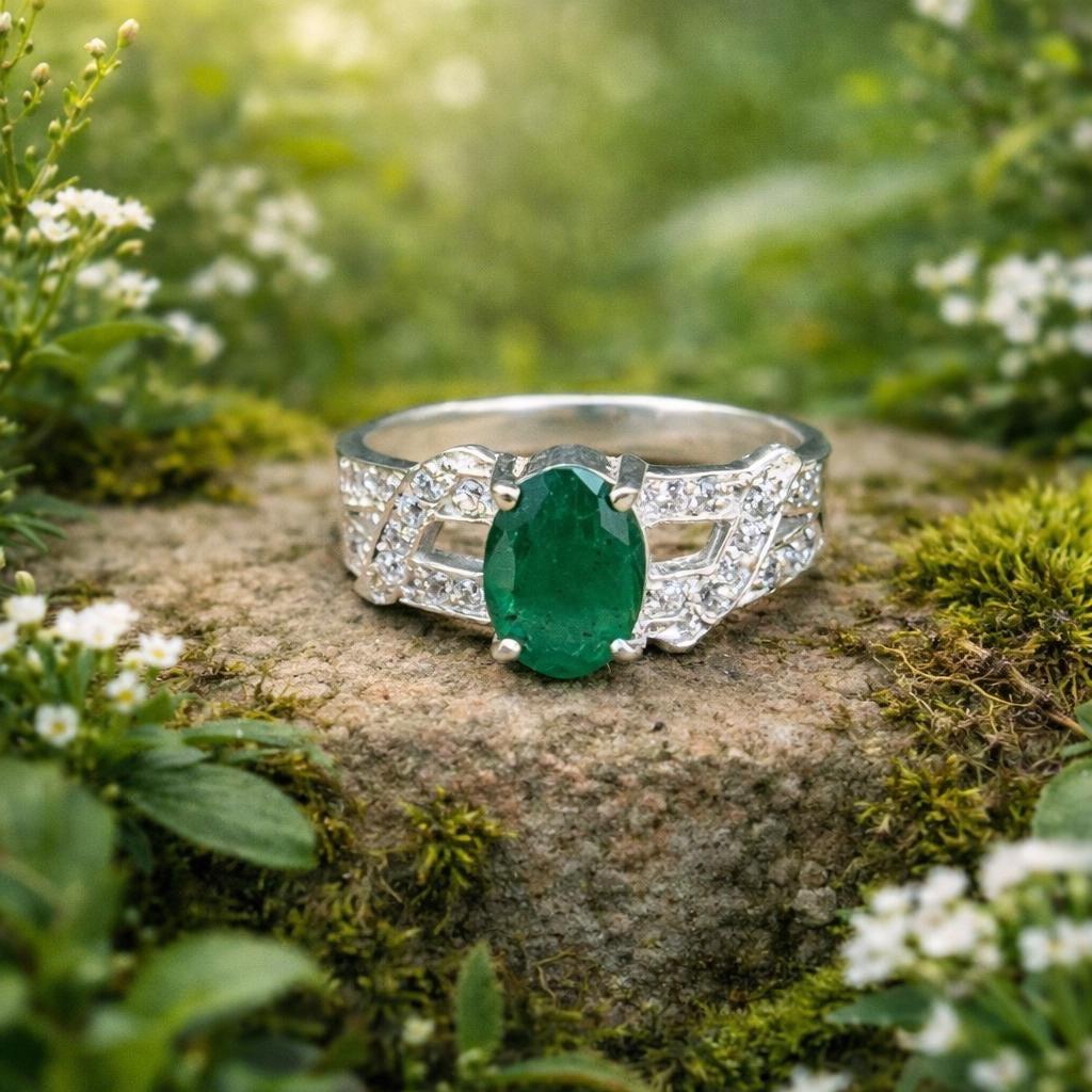 Natural Zambian Emerald Ring 925 Sterling Silver- Vivid Green Oval Emerald- Statement Ring- May Birthstone Jewellery Gift