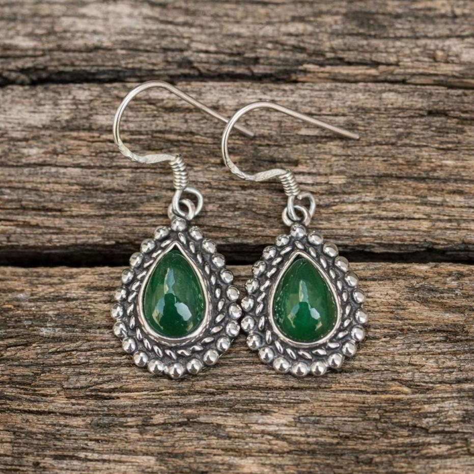Natural Zambian Emerald Teardrop Earrings In 925 Sterling Silver- Green Gemstone Jewellery- Silver Drop Earrings- Anniversary Gift For Her
