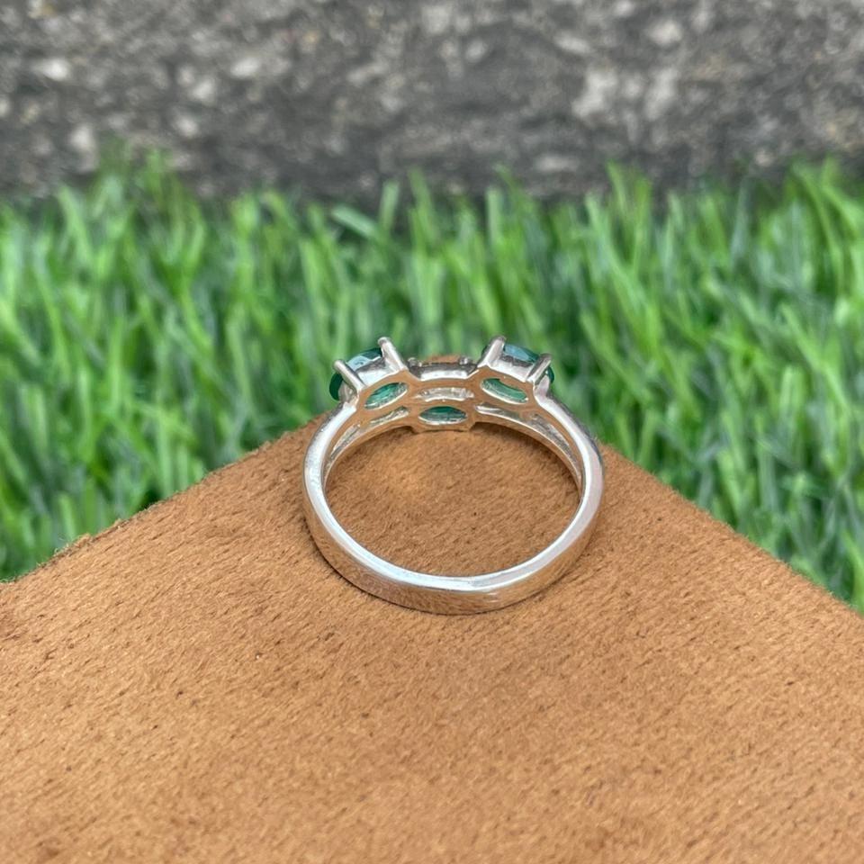 Natural Zambian Emerald Trilogy Ring 925 Sterling Silver- Three Stone Oval Emerald Ring- Anniversary Engagement Jewellery- Classic Ring