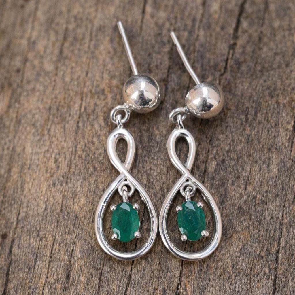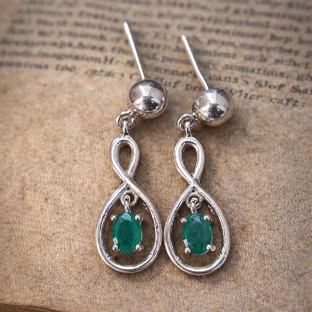 Vintage Style Emerald Dangle Earrings – Sterling Silver, Classic Jewelry