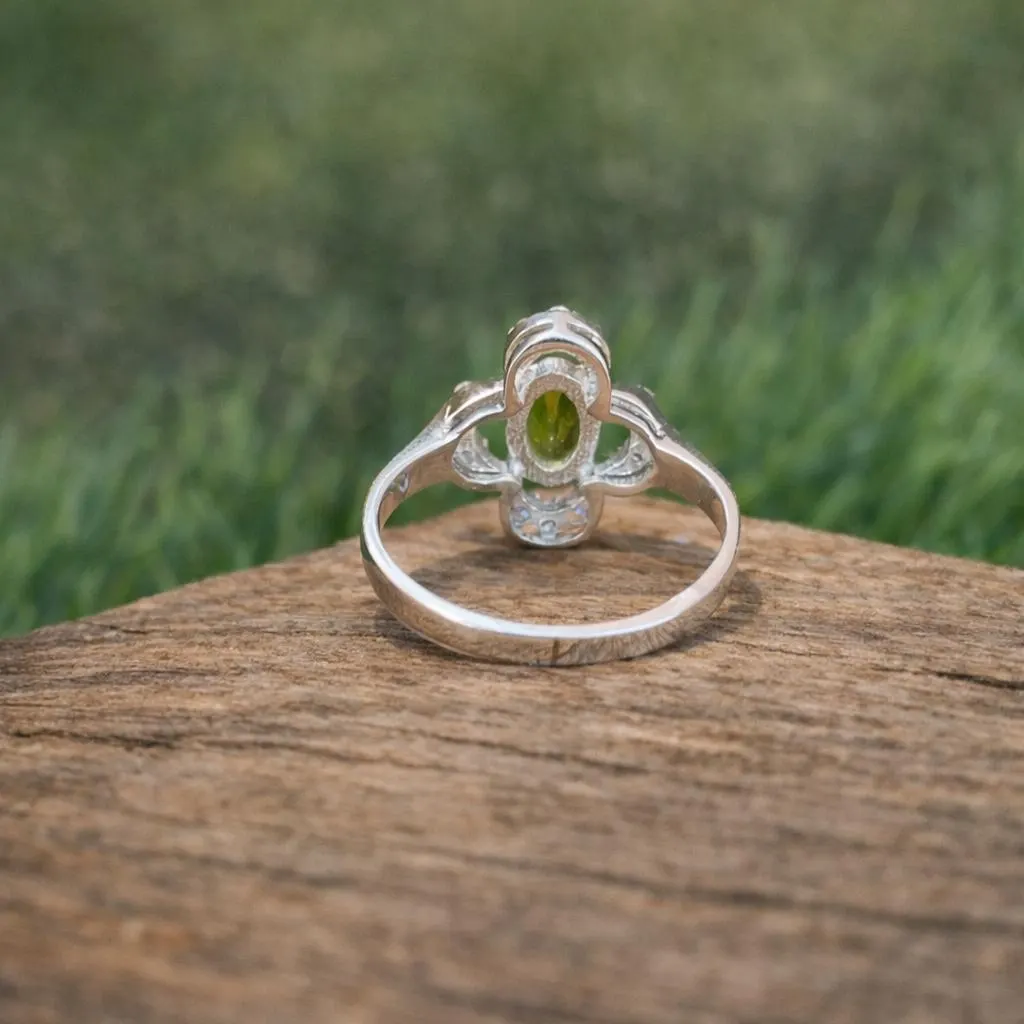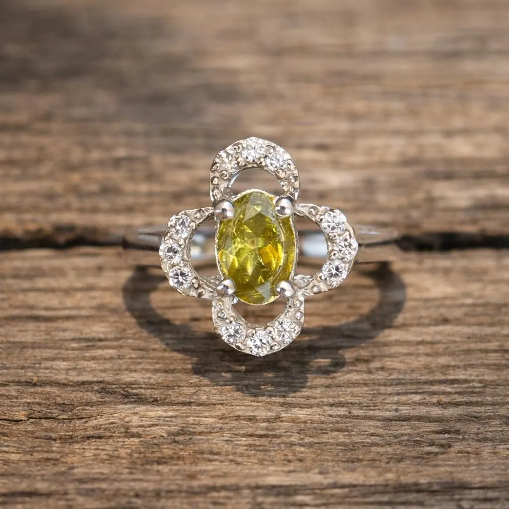 Yellow Tourmaline Ring – Floral Halo, Sterling Silver Gemstone Jewelry